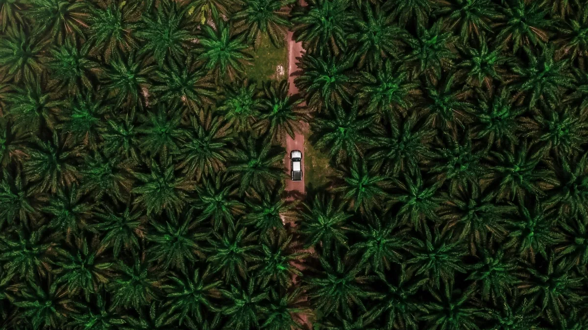 Foto aerial menunjukkan kebun sawit yang luas di Indonesia, menyoroti perkembangan industri kelapa sawit yang pesat.